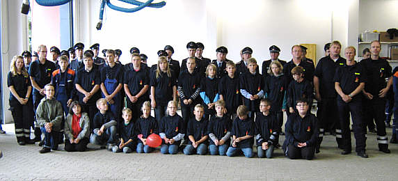 Ein freudiges Ereignis stand trotzdem noch an, das Versicherungsbüro Mario Schmidt aus Eickling hatte sich bereit erklärt, die Nachwuchskicker der U8 mit einen neuen Satz toller Trikots auszustatten. Da das Versicherungsgeschäft der VGH allerdings zu brummen scheint, war ein Termin zur offiziellen Trikotübergabe schwer zu finden. So ergab es sich, dass die Kicker der U8 trotz der schmerzlichen Heimniederlage gegen starke Wienhäuse-ner sich auf in den Ort des Gegners machten. Um den edlen Spender Mario auf der Ge-werbeschau einen Besuch abzustatten und mit ihm die traditionellen Fotos zu schießen. Wie die Orgelpfeifen marschierten wir auf das Zelt und bedankten und vorschriftsmäßig mit einem dreifachen Hipphipp Hurra! Mario lud uns alle noch auf ein Kaltgetränk ein, und versprach uns in unserem letzten Punktspiel am 8.10. um 15.30 Uhr (Terminerin-nerung für Mario) in Bröckel lautstark zu unterstützen (wir sind die Roten mit deiner Werbung!!!).