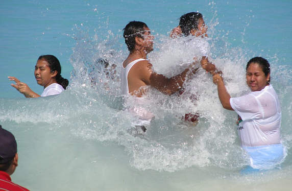 Bei regnerischem Wetter wurde man allerdings nicht nur von oben nass, denn verschiedene Wildwasserbahnen trugen zusätzlich zur allgemeinen Durchnässtheit bei. Eltern und Betreuer wurden zu dem von den Kindern bei einer Wasserschlacht im wahrsten Sinne des Wortes nass gemacht.
