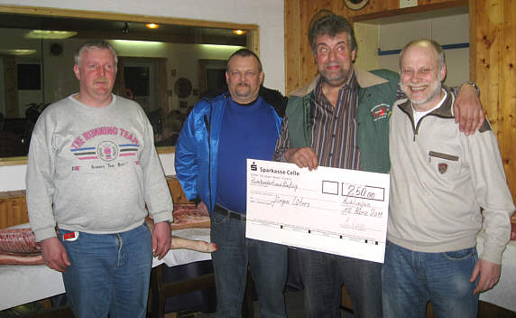 Linnewedel überbrachte hier gerne seinem Flotwedeler Nachbarn, stellvertretend im Namen von Dr. Theo Zwanziger (Präsident des Deutschen Fußballbundes), für seine mehr als vorbildlichen Leistungen die DFB-Ehrengaben und dankte dem schon immer einsatzfreudigen 46-jährigen Böse besonders für seinen bisher gezeigten Vereinseinsatz. Seit dem Jahre 2000 ist der Geehrte als Jugendbetreuer im TuS Eicklingen eine feste Größe im Vereinsleben. Seine dreijährige Amtszeit als zweiter Fußballspartenleiter gab er jetzt ab, um sich nun als "aufbrausender Jugendmotor" voll und ganz für die Nachwuchsarbeit einzubringen. Als sehr impulsiver Altliga-Player hält sich Frank Böse weiterhin im Kameradenkreis körperlich fit. Während der kleinen Feierstunde erhielt der nette Böse eine DFB-Herrenarmbanduhr sowie einen Champions-League-Ball, mit seinen zwei "kleinen Brüdern" zur Erinnerung.