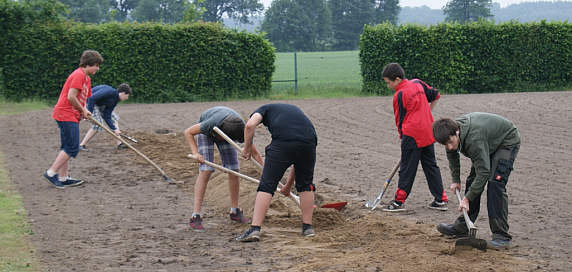 Mitglieder des TuS Eicklingen helfen bei der Sanierung ihres Sportplatzes