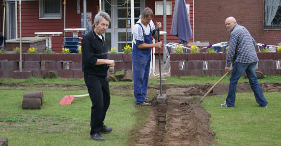 33 freiwillige Helfer folgten dem Aufruf und erschienen mit Schaufeln auf dem Sportgelände "Am Bannkamp". um ihren Verein zu unterstützen. Die erforderlichen Arbeiten waren dann auch zügig erledigt. Der Vorsitzende des TuS Eicklingen, Hartmut Krause, freute sich über die tatkräftige Unterstützung und bedankt sich im Namen des Vereins auf diesem Wege für die Hilfe.