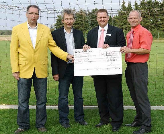 Die Kosten für diese Baumaßnahme beliefen sich auf fast 32.000 EUR. Aus eigenen Mitteln ist das natürlich nicht zu finanzieren. Unter anderem freut sich der TuS Eicklingen deshalb über eine Förderung der Regionalstiftung der niedersächsischen Sparkassen für die Renovierung des Platzes, inklusive des Baus einer Versenkberegnungsanlage und die Anschaffung von zwei Jugendtoren.