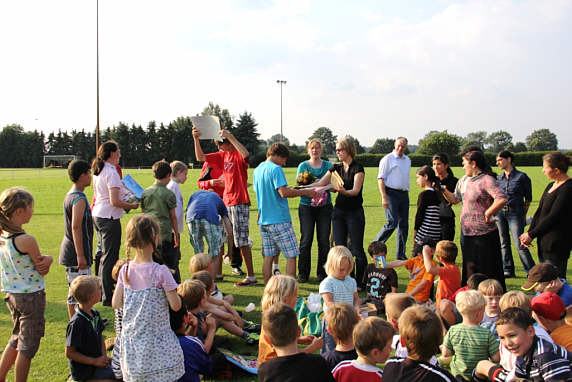 Tolle Saison endet mit schönem Abschlussfest. Die Feldspielsaison der G-Jugend ist beendet und ich hoffe ihr hattet alle viel Spaß dabei! Auf jeden Fall war die Trainingsbeteiligung in den letzten Wochen ungebrochen hoch, und wir konnten immer um die 30 Kinder zum freitäglichen Training begrüßen. Glücklicherweise hat sich auch der Trainerstab seit Saisonbeginn deutlich vergrößert und entspricht mittlerweile gutem Bundesligastandard. Mit Jannis und Lennart haben wir zwei sehr gute Techniktrainer dazu gewonnen. Leo verstärkt dass Team als Mentalcoach, in der heutigen Zeit ein Muss. Diese Mischung hat im Wesentlichen zu der guten geistigen und sportlichen Fitness geführt, die eine erfolgreiche Mannschaft braucht (vielleicht sollte Frau Neid bei uns mal nachfragen).