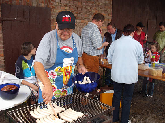 Unser besonderer Dank gilt Alexander Ziebarth, denn der gesellige Teil unserer Veranstaltung fand bei ihm zu Hause statt. Hier wartete in dem gemütlichen Partyraum eine liebevoll gedeckte Tafel. Die knackigen Würstchen, die leckeren Salate und der frische Kuchen waren sehr lecker. Ein großes Lob an Alexander, Gabi und Frank für die tolle Organisation.