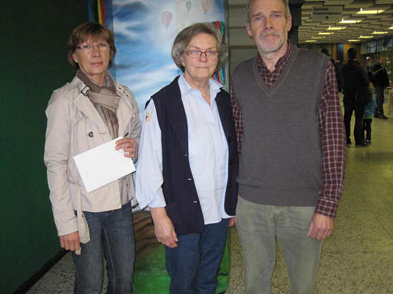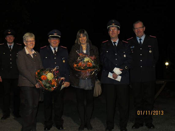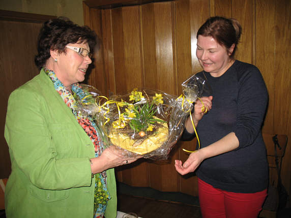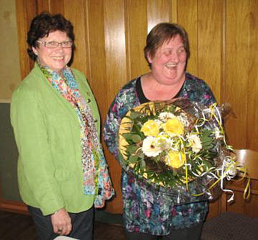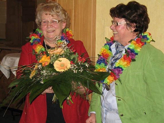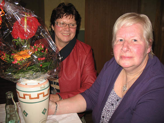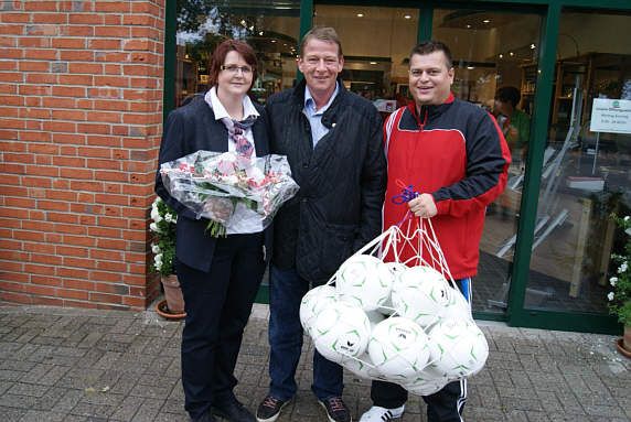 Jugendleiter Frank Böse bedankte sich bei Helga und Peter Soltau u.a. mit einem Blumenstrauß. Helga und Peter, die Fußballer sagen DANKE.