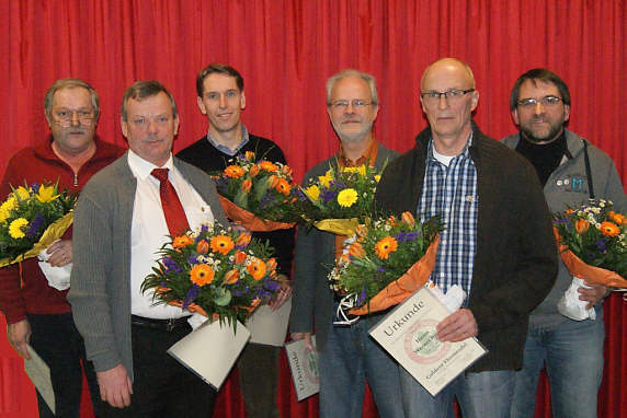 Nach den Ehrungen für langjährige Vereinszugehörigkeit konnten Axel Jakob, Ulli Parade, Karl-Heinz Hoppe, Harald Schumacher und Carsten Pröve die Silberne Ehrennadel für ihre ehrenamtlichen Tätigkeiten in Empfang nehmen.