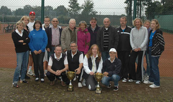 Wie vorhergesagt fing um die Mittagszeit der Regengott an zu weinen, und ein Abbruch der Spiele drohte. Anerkennenderweise zeigten sich die Protagonisten unbeeindruckt regenresistent, spielten mutig weiter und alle Spiele konnten zu Ende gespielt werden. Nach spannenden und teilweise hochklassigen Matches standen die Gewinner fest. Dies waren bei den Damen das Wienhäuser Paar Katrin Regener/Katrin Breuer-Hanebuth vor dem Eicklinger Doppel Renate Hiestermann/Anne Schaumann. Bei den Herren konnten sich Wolfgang Schaumann/Uli Voss gegen die Sieger der letzten zwei Jahre, Thomas Meyer/Johannes Weißenborn, durchsetzen.