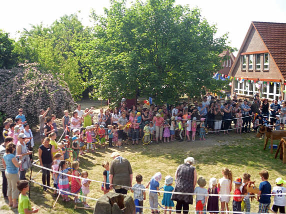 Vor einigen Tagen feierte der DRK-Kindergarten "Rappelkiste" bei schönstem Sommerwetter sein großes Sommerfest. Fast alle Kindergartenkinder trafen sich um 16.00 Uhr mit ihren Geschwistern und Familien zum diesjährigen Reiterfest auf dem Spielplatz des Kindergartens.