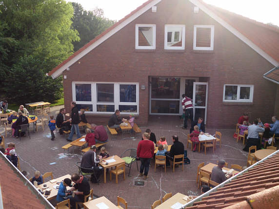 An einem spätsommerlichen Freitagnachmittag haben sich viele Väter nach ihrem Feierabend mit ihren Kindern in unserem Kindergarten zu einer „Väteraktion“ getroffen. Die Mütter mussten – oder durften – dieses Mal zu Hause bleiben. Solche Aktionen führt die KiTa regelmäßig durch, damit auch die Väter mit ihren Kindern zusammen etwas im Kindergarten gestalten und unternehmen können.