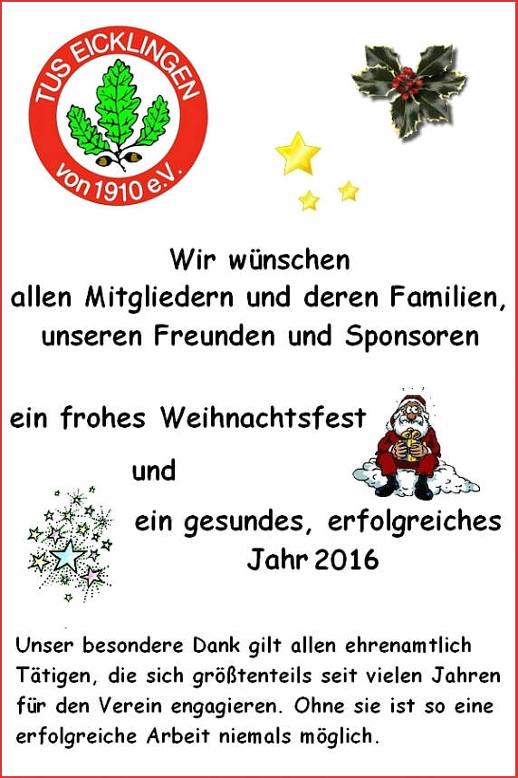 Der DRK OV Eicklingen wünscht Ihnen und Ihren Familien ein frohes Weihnachtsfest und alles erdenklich Gute für das neue Jahr 2016!