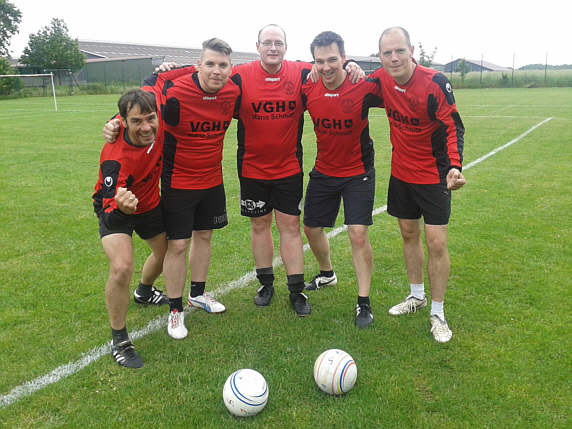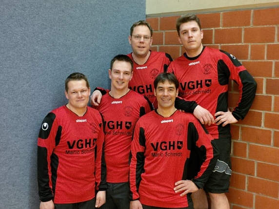 Über einen Satz neuer Spielkleidung freut sich die 2. Herren. Ermöglicht wurde die Anschaffung durch eine Spende von Ulf Harms, Bernd Prasuhn (Prasuhn GmbH) und Pascal Redlich (Allianz). Die Mannschaft bedankt sich ganz herzlich für das Sponsoring. Damit sind die Spieler optisch sowie sportlich bestens in die neue Saison gestartet und holten 28 Punkte nach dem 16. Spieltag. Nach der Winterpause geht’s am 15. März 2015 weiter auf Torejagd. Wir wünschen allen eine besinnliche Weihnachtszeit und einen guten Rutsch ins neue Jahr.