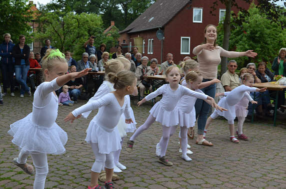 Neben einem kleinen Flohmarkt gab es Pommes, Bratwurst, Kaffee und Kuchen. Auch die Voltigierer waren dabei. In der Mittagspause zeigte die Nachwuchsgruppe Eicklingen V, auf dem Voltigierpferd Wilma, ihr Können.