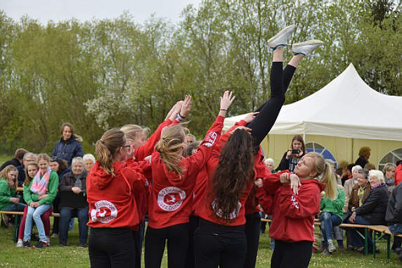 Mittlerweile voltigieren 50 Mädchen und Frauen zwischen 6 und 28 Jahren im Verein. Und zwar bunt gemischt, nicht wie in den meisten Sportarten nach Altersgruppen geteilt. Besonders schön und motivierend für die Kleinsten ist es, von den Großen zu lernen.