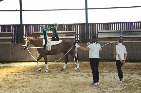 Seit Anfang 2015 können wir fünf Gruppen auf zwei Pferden anbieten, so viel wie noch nie. Die Gruppen 1-4 werden von Christiane Adam trainiert und die 5. Gruppe von Übungsleiterin Frederike Heidmann, selbst aktive Voltigiererin.