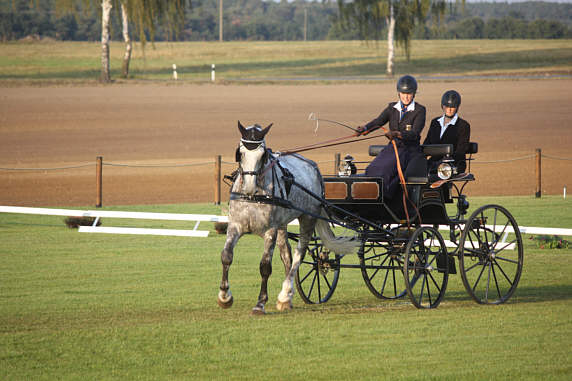 Dienstagvormittag machten sich alle Teilnehmer mit ihren Pferden, Kutschen und Helfern auf den Weg nach Schildau. Nach einem Eingewöhnungstag, für Pferd und Fahrer, ging es für die Ersten am Donnerstag mit der Dressur los. Für Marcella und ihr Reservepferd Santino ging es am Freitag an den Start. In der ersten Prüfung fuhren sie auf einen guten 6. Platz. Ins Gelände ging es für alle am Samstag, dort konnte sich Marcella mit einer Bestzeit und sehr schnellen Hindernissendurchfahrten den 1. Platz erfahren. Leider musste eine deutsche Fahrerin wegen Komplikationen aufgeben, alle anderen Teilnehmer sind gut und sicher durchs Gelände gekommen.