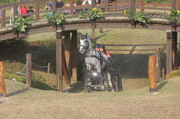 Für die anspruchsvolle Prüfung „Hindernisfahren mit Geländehindernissen“ haben die Eicklinger eigens ein Wasserhindernis und eine Brücke zum durch- und überfahren gebaut. Auch hier waren die Eicklinger Einspänner 10 - 20 Sekunden langsamer als die Winsenerin, trotz vielen begeisterten Zuschauern und strahlendem Sonnenschein. In der Gesamtwertung konnte sich Hilse aufgrund seiner guten Dressurnote den 4. Platz (71,856) sichern vor Susanne Zakfeld auf Platz 6 (73,000) und Kerstin Prinz-Stelzer auf Platz 8 (76,234). In der Kreismeisterwertung standen diese drei Celler Fahrer auf dem Treppchen und holten sich die begehrten Medaillen, die von Karen Hilse der zweiten Vorsitzenden des Kreisreiterverbandes Celle und Arne Prüfer erster Vorsitzende des Reit- und Fahrverein Eicklingens überreicht wurden.