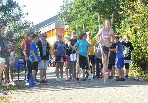 Der Reit- und Fahrverein Hänigsten veranstaltete am 17.09. ein großes Voltigierturnier. Eicklingen startete mit allen drei Nachwuchsgruppen auf zwei Pferden longiert von Christiane Adam und unterstützt von Frederike Heidmann. Als erstes ging Eicklingen V an den Start. Die neun Mädchen zwischen sechs und zehn Jahren voltigierten auf dem Pferd Wilma, für einige das erste Turnier. Im Schritt musste jede fünf bestimmte Übungen in der richtigen Reihenfolge turnen. Trotz weniger Trainingseinheiten erreichte die Gruppe V, mit einer Wertnote von 4,857 Punkten den 2. Platz.