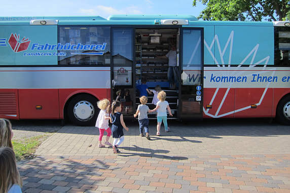 Der Bücherbus der Fahrbücherei des Landkreises Celle, bot den DRK-Krippenkindern aus Eicklingen die Gelegenheit, das Ausleihen von Büchern kennen zu lernen und die Ausleihe tatsächlich zu erleben.