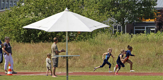 17 Teams stellten sich den Herausforderungen wie; Vierer-Rasenski, Dosenwerfen mit Frisbeescheiben, Vierbein- und Zeitungslauf, Balltransport, Tuchball, Bergsteiger und Schubkarrenrennen und verdienten sich in sengender Sonne Ihre Team-Urkunde und eine Abkühlung durch Rasensprenger, die der TuS Eicklingen extra anstellen ließ. An dieser Stelle gilt mein besonderer Dank Hartmut Krause, dem Vors. des TuS Eicklingen mit seinem Team der freiwilligen Helfer und Helferinnen aus der Turnabteilung um Sandra Santelmann und Svenja Hanking!
