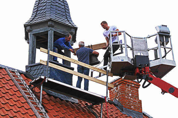 Die mehrjährige Sanierung des Eicklinger Amtsstubenhauses fand jetzt ihren „krönenden“ Abschluss: Oben, im Dachreiter des historischen Gebäudes, hängt wieder eine Glocke. Die aktuelle Tageszeit wird von der gleichzeitig angebrachten neuen Uhr angezeigt. Unter den lateinischen Ziffern I bis XII sieht man den Schriftzug „ren. 2021“ (renoviert 2021). Er bezieht sich auf die mit der Einweihungsfeier im vergangenen Jahr abgeschlossenen Bauarbeiten – kleinere Restarbeiten ausgenommen. Dass nun ausgerechnet die Uhr „unpünktlich“ (statt 2021 erst 2022) ihren Platz eingenommen hat, lag am langwierigen Abstimmungsverfahren mit dem Landesamt für Denkmalpflege. Die Anschlagglocke (d.h. sie schwingt nicht, sondern wird von außen angeschlagen) bleibt noch einige Tage stumm. Die Klang-Premiere findet am 19. Juni um 14.30 Uhr statt, am Tag der offenen Tür des Heimatvereins. Glockenweihe inklusive, dazu Musik von der Big Band, dem Männerchor Eicklingen/Wienhausen, dem Frauensingkreis und den Jagdhornbläsern. Nicht zu vergessen der Auftritt der Volkstanzgruppe sowie Kaffee und Kuchen.