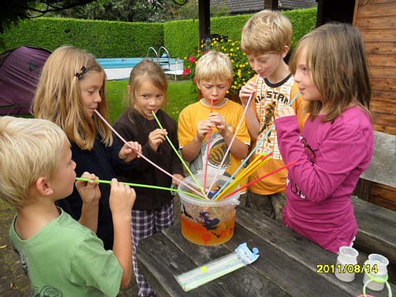 Bei regnerischem Wetter wurde man allerdings nicht nur von oben nass, denn verschiedene Wildwasserbahnen trugen zusätzlich zur allgemeinen Durchnässtheit bei. Eltern und Betreuer wurden zu dem von den Kindern bei einer Wasserschlacht im wahrsten Sinne des Wortes nass gemacht.