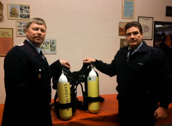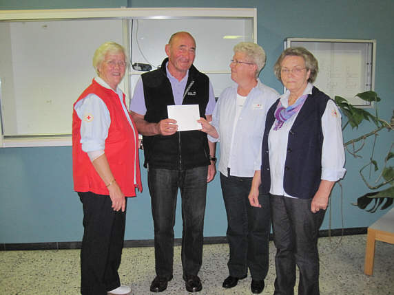 Andreas Sinning, Hartmut Krause und Frank Böse nehmen den Scheck der Regionalstiftung von Markus Niemann entgegen