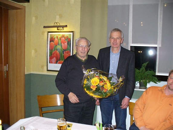 Linnewedel überbrachte hier gerne seinem Flotwedeler Nachbarn, stellvertretend im Namen von Dr. Theo Zwanziger (Präsident des Deutschen Fußballbundes), für seine mehr als vorbildlichen Leistungen die DFB-Ehrengaben und dankte dem schon immer einsatzfreudigen 46-jährigen Böse besonders für seinen bisher gezeigten Vereinseinsatz. Seit dem Jahre 2000 ist der Geehrte als Jugendbetreuer im TuS Eicklingen eine feste Größe im Vereinsleben. Seine dreijährige Amtszeit als zweiter Fußballspartenleiter gab er jetzt ab, um sich nun als "aufbrausender Jugendmotor" voll und ganz für die Nachwuchsarbeit einzubringen. Als sehr impulsiver Altliga-Player hält sich Frank Böse weiterhin im Kameradenkreis körperlich fit. Während der kleinen Feierstunde erhielt der nette Böse eine DFB-Herrenarmbanduhr sowie einen Champions-League-Ball, mit seinen zwei "kleinen Brüdern" zur Erinnerung.