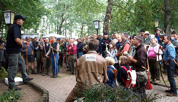 Die Strecke führte uns zu der noch bestehenden 25m hohen Sanddüne mit dem Namen "Hoher Wahn". Hier wird im Winter gern gerodelt. Der Weg verlief zum Ahrenskamp (Maisfeld), die Begegnung mit einem Rudel Wildschweine erfüllte sich nicht, denn es war abgeerntet. Unsere Aufmerksamkeit lenkten wir nun auf ein kleines Moor. In Dunkelheit marschierten wir am Rande des Moores zu einem kleinen Hexenhaus. Der weitere Weg führte uns nun aus dem Wald auf eine befahrbare Straße, über die Bahngleise zum Wienhäuser Kirchweg. Nun ging es wieder zum Ausgangspunkt durch den Wald zurück. Hier überraschte uns Sigrid mit einem reichhaltigen gedeckten Tisch, wir verweilten einige gemütliche Stunden in gemeinsamer Runde.