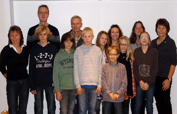 Vordere Reihe: Dagmar Schumacher Gold (20), Lennart Jakob Gold (6), Jaron Jenschke Gold (5), Jan Schumacher (Gold 4), Laurent Jakob Bronze (1), Elodie Jakob Gold (4), Lisa Krüger Gold (4)