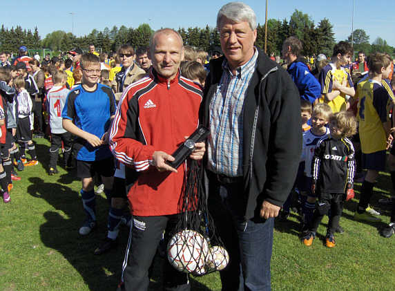 Jens-Holger Linnewedel (Vorsitzender des NFV-Kreises Celle) zeichnete im großen Rahmen anlässlich des 17. Jugend-Mai-Turniers mit 72 Fußballmannschaften (G- bis C-Junioren) den engagierten Sportkameraden Frank Böse (links) offiziell für seine ehrenamtlichen Leistungen aus.