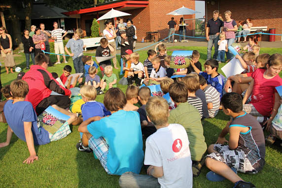 Tolle Saison endet mit schönem Abschlussfest. Die Feldspielsaison der G-Jugend ist beendet und ich hoffe ihr hattet alle viel Spaß dabei! Auf jeden Fall war die Trainingsbeteiligung in den letzten Wochen ungebrochen hoch, und wir konnten immer um die 30 Kinder zum freitäglichen Training begrüßen. Glücklicherweise hat sich auch der Trainerstab seit Saisonbeginn deutlich vergrößert und entspricht mittlerweile gutem Bundesligastandard. Mit Jannis und Lennart haben wir zwei sehr gute Techniktrainer dazu gewonnen. Leo verstärkt dass Team als Mentalcoach, in der heutigen Zeit ein Muss. Diese Mischung hat im Wesentlichen zu der guten geistigen und sportlichen Fitness geführt, die eine erfolgreiche Mannschaft braucht (vielleicht sollte Frau Neid bei uns mal nachfragen).