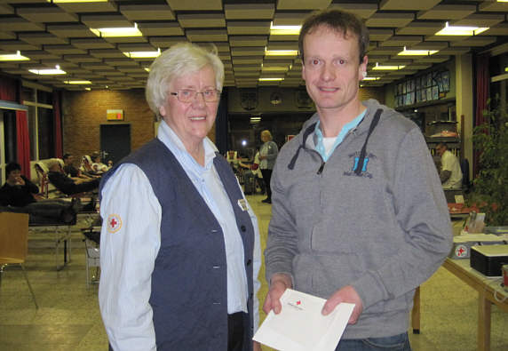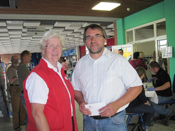 Der Abteilungsleiter Axel Jakob freut sich mit Gudrun Kamp