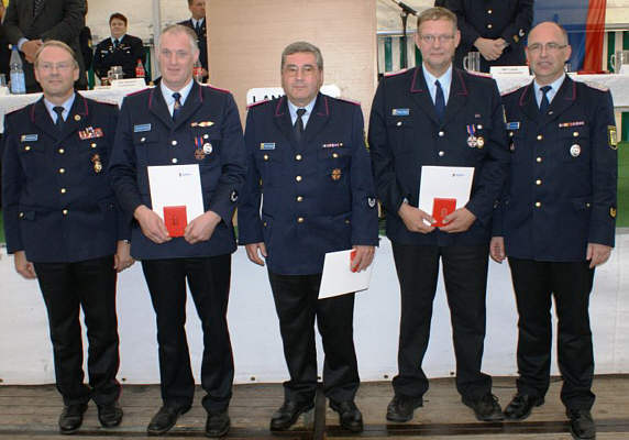 Nach den Ehrungen für langjährige Vereinszugehörigkeit konnten Axel Jakob, Ulli Parade, Karl-Heinz Hoppe, Harald Schumacher und Carsten Pröve die Silberne Ehrennadel für ihre ehrenamtlichen Tätigkeiten in Empfang nehmen.