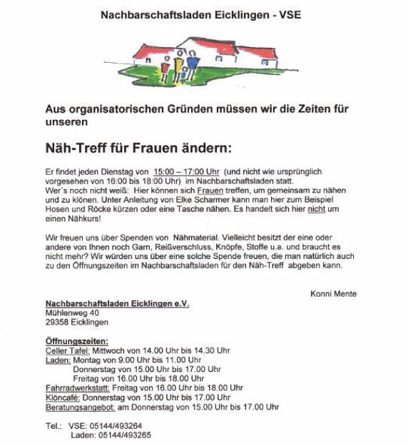 Ich möchte mich hiermit bei meinen Eltern, Geschwistern, Nichten, Neffen, Angestellten, Helfern und Freunden für ihre Hilfe recht herzlich bedanken. Ebenso bei der Gemeinde Eicklingen, den Angestellten im Rathaus, dem Bauhof, den Eicklinger Firmen und Lieferanten. Nicht zu vergessen die Eicklinger Vereine, die das Sportheim zu Versammlungen und Feiern aufgesucht haben. In erster Linie natürlich der TuS Eicklingen - das Herz des Sportheims.