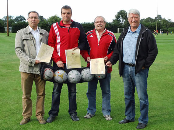 Nachdem Helga und Peter Soltau vom Hof Soltau in Eicklingen der Fußball Jugendabteilung neue Trainingsanzüge spendierten, entschlossen sie sich spontan, den Bambinis 10 neue Trainingsbälle zu übergeben.