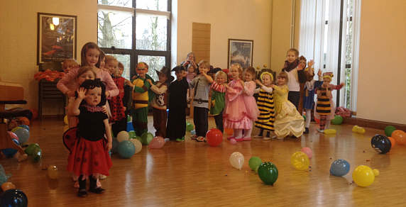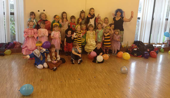 Wieder einmal bewiesen die kleinen Bienen, Feen, Prinzessinnen, Ninja Turtles, Polizisten und Darth Vaders, dass sie auch in Kostümen eine prima Figur machen – und sogar klasse darin tanzen können. Zwischen vielen bunten Luftballons freuten sie sich über Stopptanzen, das Fliegerlied oder den kleinen Bären im Zoo.