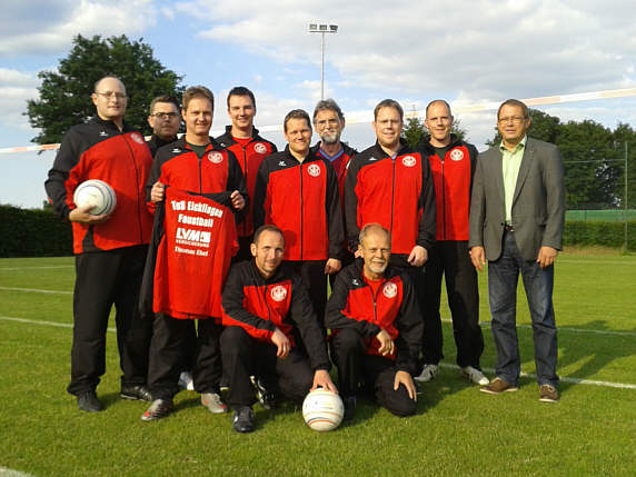 Über einen Satz neuer Spielkleidung freut sich die 2. Herren. Ermöglicht wurde die Anschaffung durch eine Spende von Ulf Harms, Bernd Prasuhn (Prasuhn GmbH) und Pascal Redlich (Allianz). Die Mannschaft bedankt sich ganz herzlich für das Sponsoring. Damit sind die Spieler optisch sowie sportlich bestens in die neue Saison gestartet und holten 28 Punkte nach dem 16. Spieltag. Nach der Winterpause geht’s am 15. März 2015 weiter auf Torejagd. Wir wünschen allen eine besinnliche Weihnachtszeit und einen guten Rutsch ins neue Jahr.