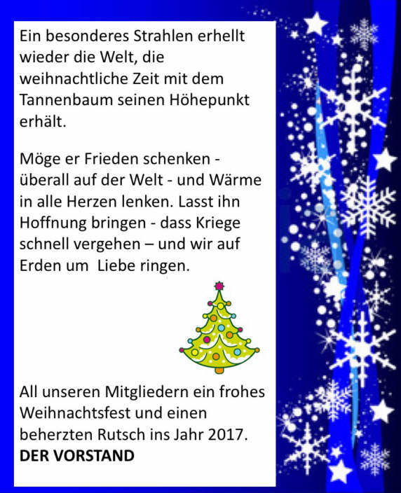 Hoffentlich können wir im nächsten Jahr wieder auf ein gelungenes Vereinsjahr zurückblicken.