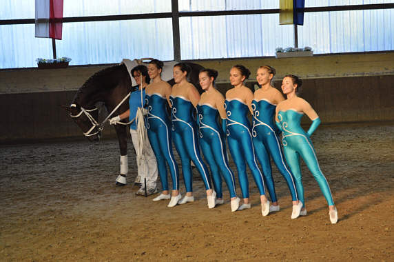 Mittlerweile voltigieren 50 Mädchen und Frauen zwischen 6 und 28 Jahren im Verein. Und zwar bunt gemischt, nicht wie in den meisten Sportarten nach Altersgruppen geteilt. Besonders schön und motivierend für die Kleinsten ist es, von den Großen zu lernen.