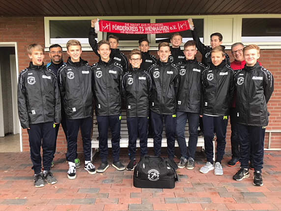 Zukünftig stehen also längere Fahrten durch den Bezirk Lüneburg an. Aus diesem Grund hat sich der Förderkreis Wienhausen bereit erklärt zusammen mit dem TuS Eicklingen die Spieler mit „Reisetaschen“ auszustatten. Schließlich muss jetzt auch das Duschzeug mit in die Tasche, da die Fahrten bis ins Harburger Land auch schon mal gern 2 Stunden in Anspruch nehmen. Die Fahrt macht nach einer Dusche viel mehr Spaß und das nicht nur für den Fahrer.