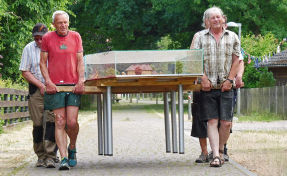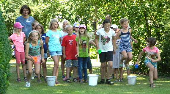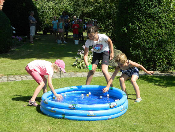 17 Teams stellten sich den Herausforderungen wie; Vierer-Rasenski, Dosenwerfen mit Frisbeescheiben, Vierbein- und Zeitungslauf, Balltransport, Tuchball, Bergsteiger und Schubkarrenrennen und verdienten sich in sengender Sonne Ihre Team-Urkunde und eine Abkühlung durch Rasensprenger, die der TuS Eicklingen extra anstellen ließ. An dieser Stelle gilt mein besonderer Dank Hartmut Krause, dem Vors. des TuS Eicklingen mit seinem Team der freiwilligen Helfer und Helferinnen aus der Turnabteilung um Sandra Santelmann und Svenja Hanking!