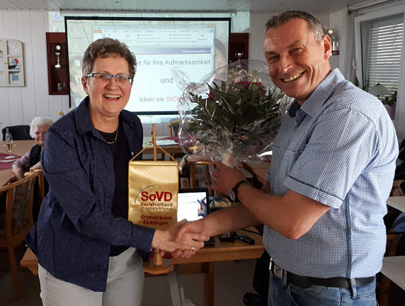 Evelyn Bredefeld und Andreas Sinning freuten sich über die Goldenen Ehrennadeln, die sie für ihre ehrenamtlichen Tätigkeiten von mehr als 20 Jahren angesteckt bekamen.